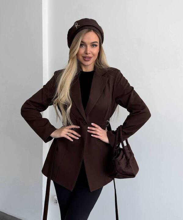 Такой пиджак отлично подойдет для офиса, деловых встреч, прогулок, поездок, повседневных выходов и ситуаций, когда хочется выглядеть особенно собранно и уверенно. Его можно носить как самостоятельный акцент в образе или сочетать с базовыми вещами для создания спокойных и элегантных комплектов. Это практичная, стильная и действительно универсальная вещь, которая легко вписывается в гардероб и помогает каждый раз выглядеть уместно, женственно и современно.