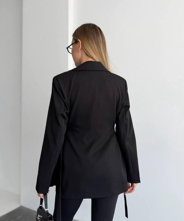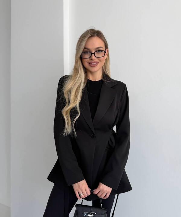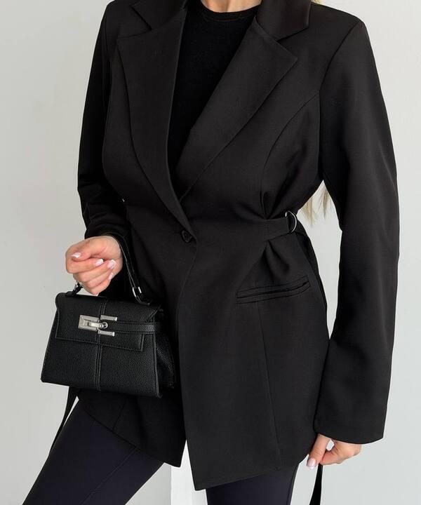 Отдельное внимание привлекает крой с акцентом на талию. Регулируемые затяжки позволяют подстроить посадку под фигуру, сделать силуэт более выразительным и подчеркнуть женственность образа. За счет этого пиджак смотрится не просто классически, а более интересно, современно и выигрышно. Он красиво формирует линию талии, не выглядит громоздко и делает весь образ более изящным. Длинный рукав и аккуратная длина позволяют носить эту модель как самостоятельный акцент в образе или сочетать с базовыми топами, блузами, водолазками и брюками.