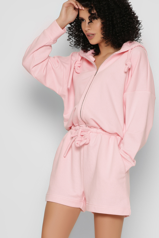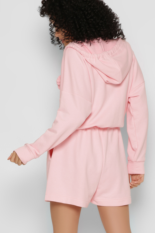 Доступные размеры :[L] Размер L:Рост модели:168 смДлина изделия:88Длина плеча:26Длина рукава:40Обхват бедер:112Обхват груди:128Ширина штанины:36Модный комбинезон-шорты в стиле oversize с удобным капюшоном на шнурке. Длинные рукава с манжетой и прорез.. Читать полностью