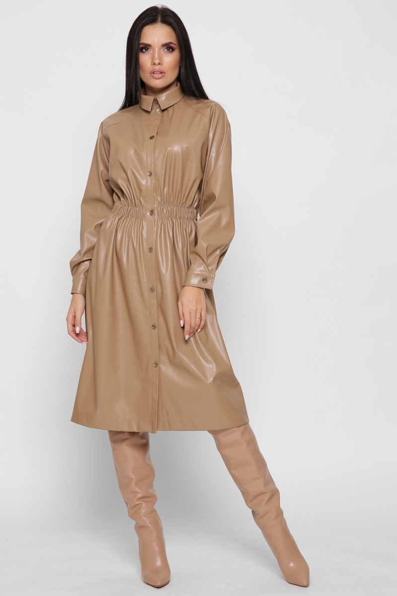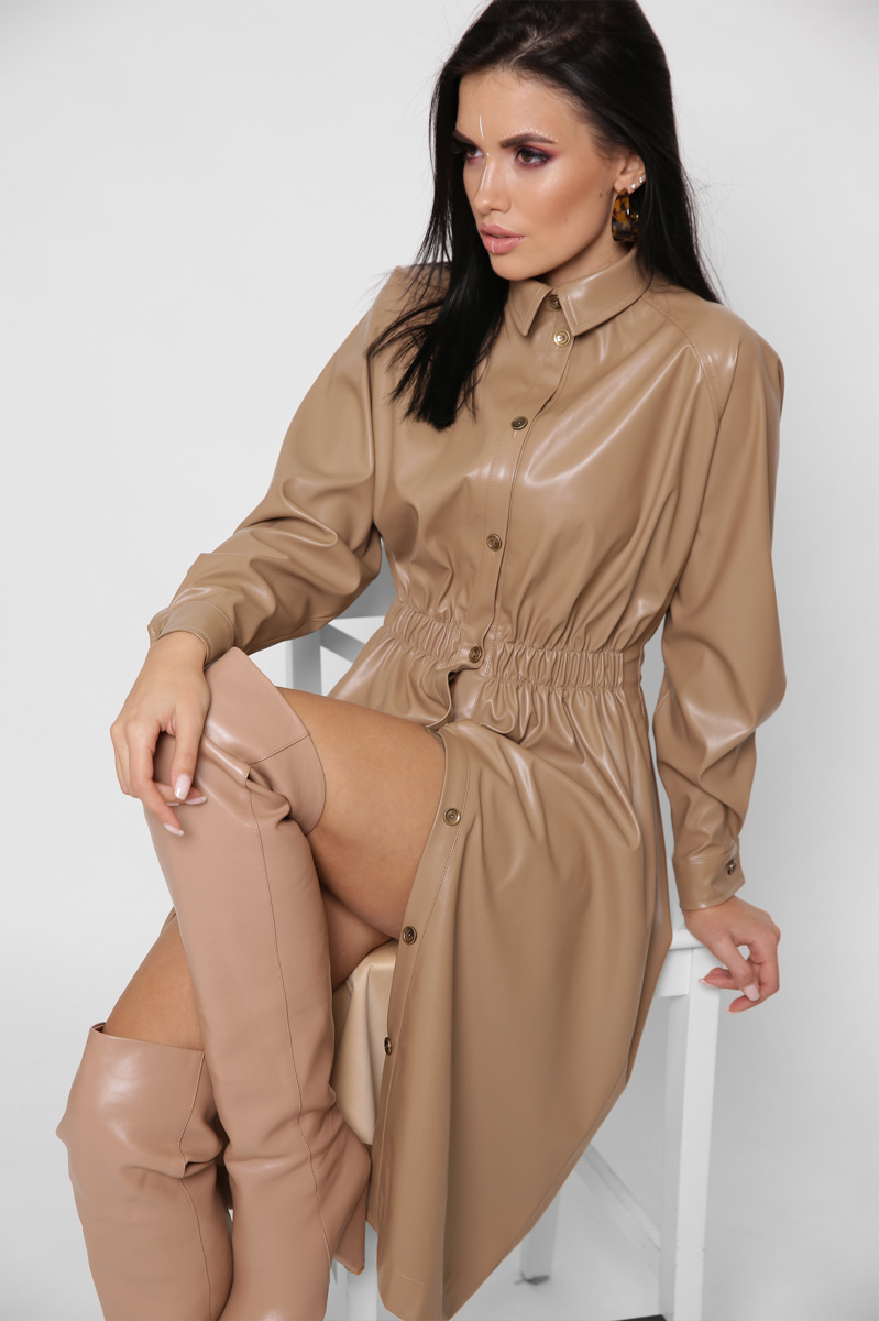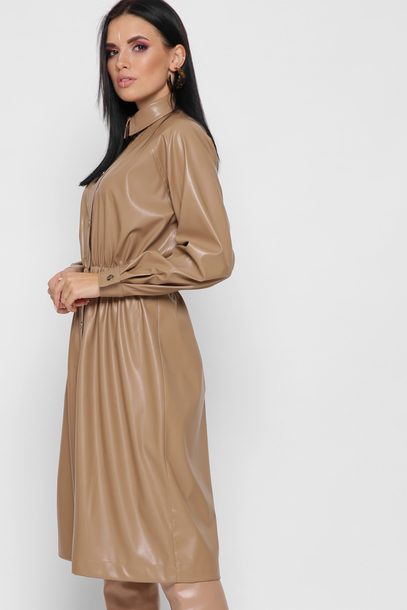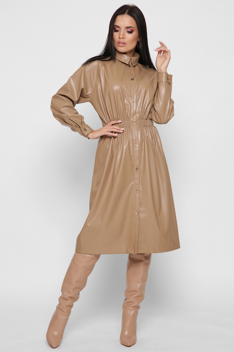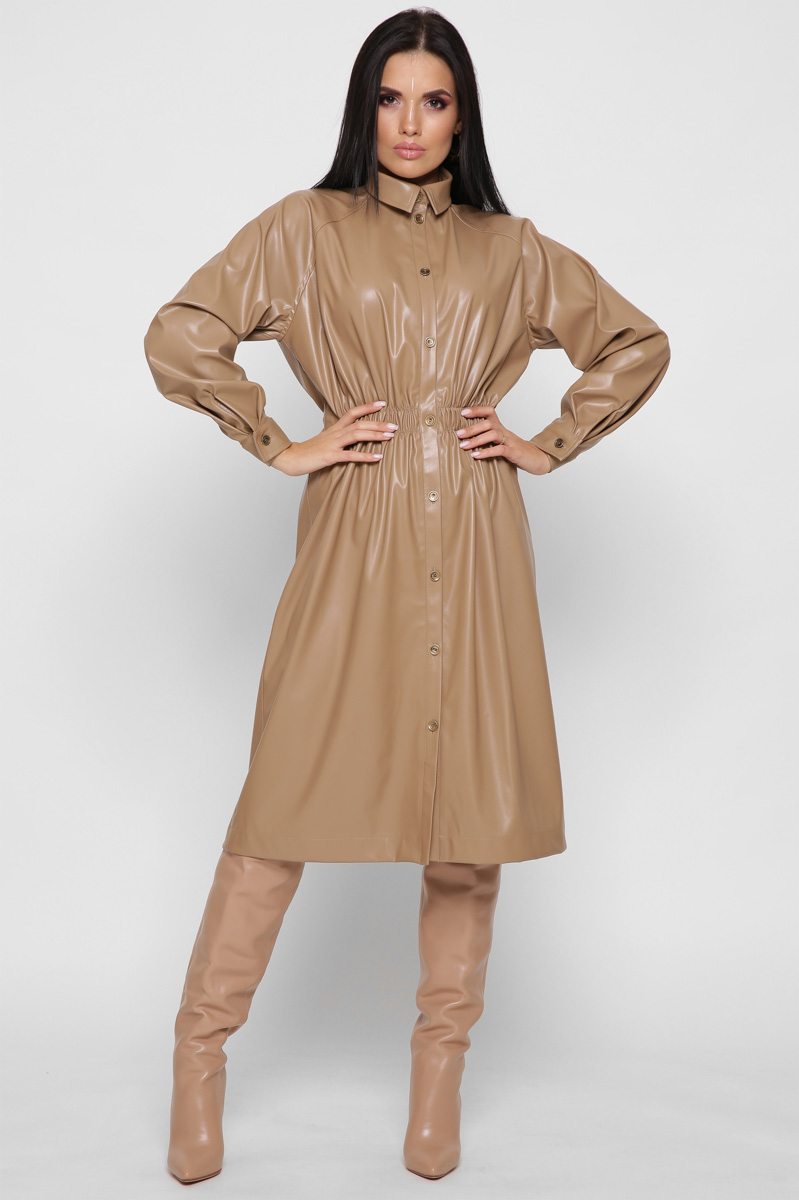 Доступные размеры :[S] Размер S:Рост модели:170 смДлина изделия:108Длина рукава:70Обхват груди:98Обхват талии:74Кожаное платье-рубашка миди – это стильный и практичный выбор для вашего гардероба. Приталенный силуэт подчеркивает фигуру, а пояс на рези.. Читать полностью
