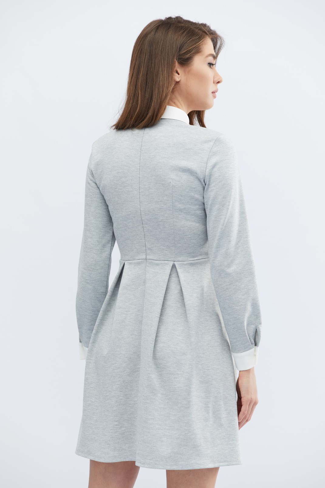 Серое платье с отложным воротником и манжетами 32601 xp-1137