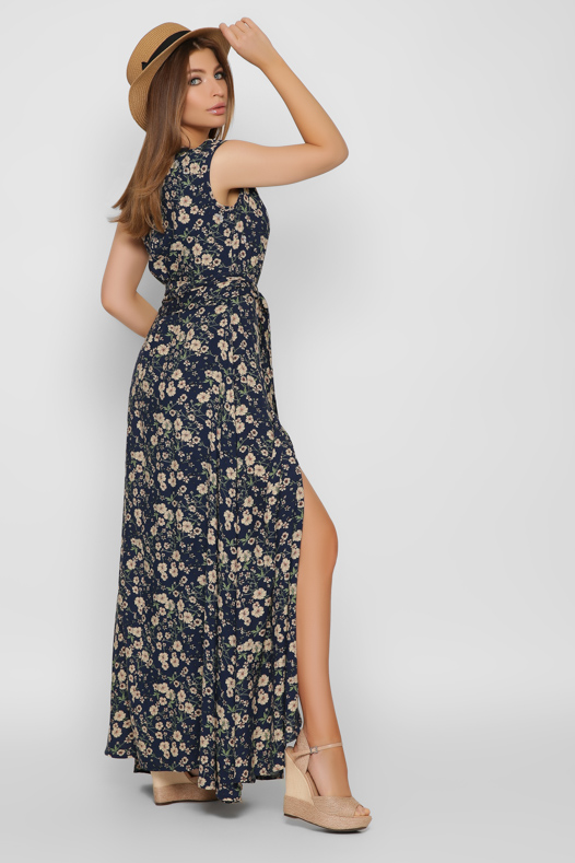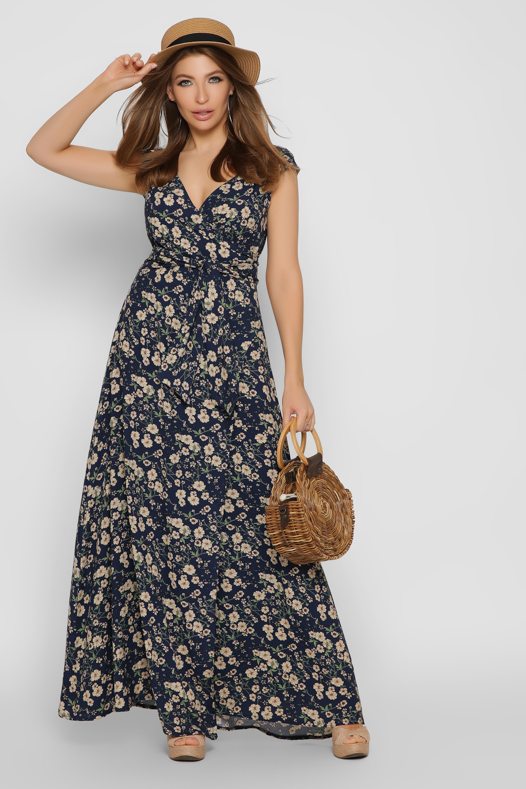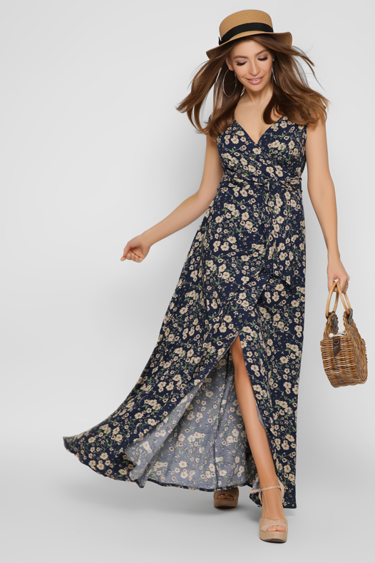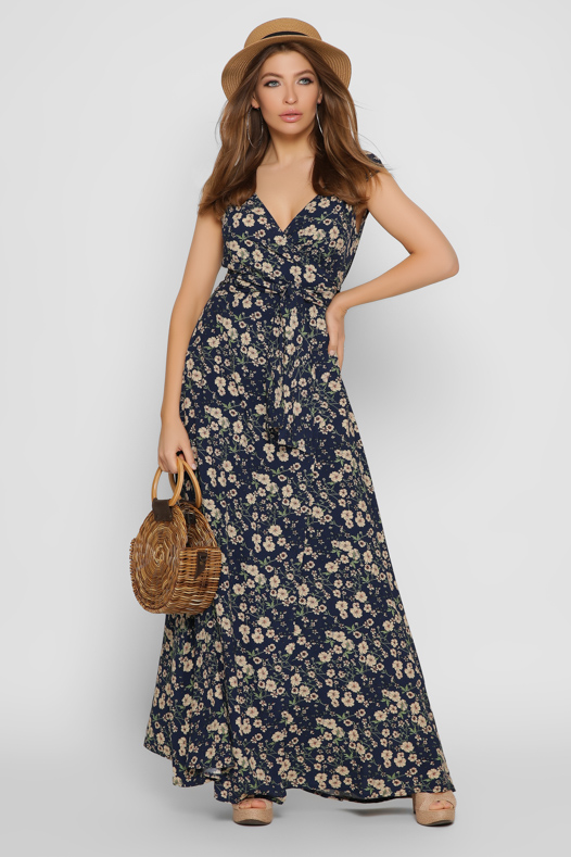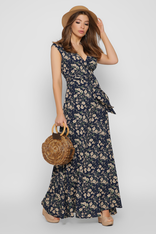 Синее платье макси на запАх 37136 xp-1300