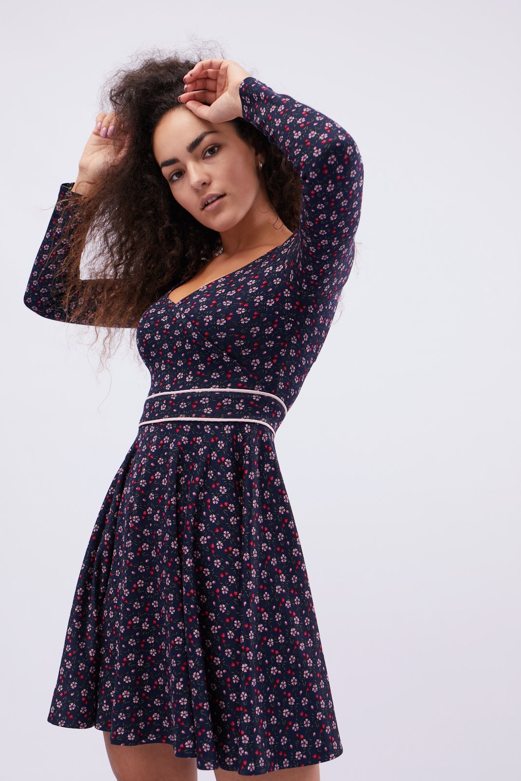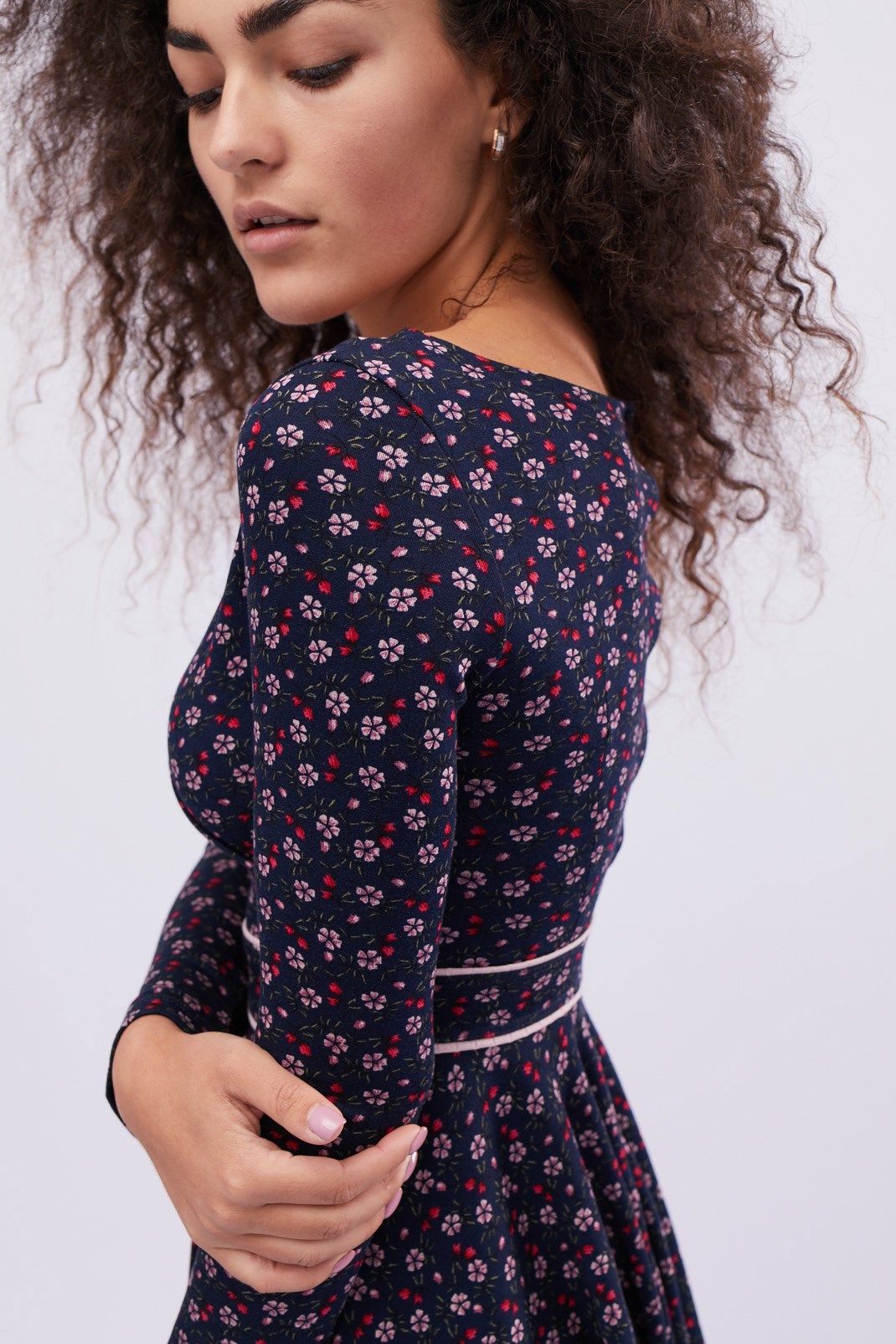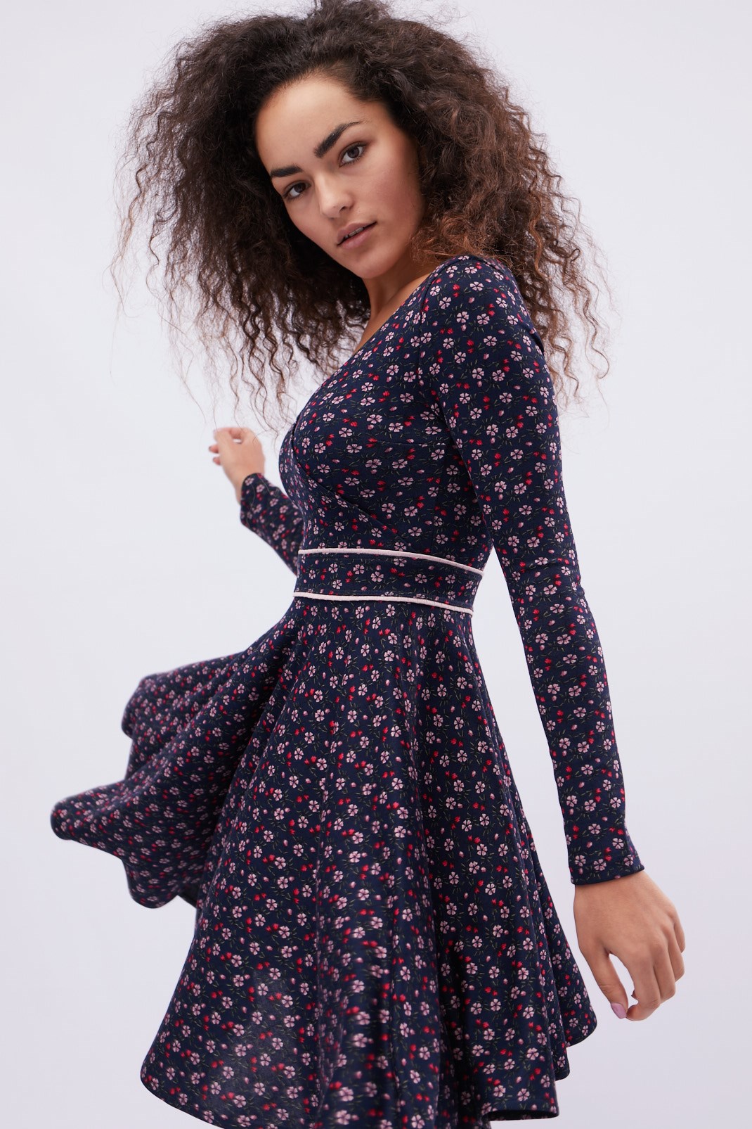 Доступные размеры :[XS] Размер XS:Рост модели:175 смДлина изделия:83Длина рукава:60Обхват груди:68Обхват талии:58Нежный цветочный рисунок на комфортном и легком трикотаже – здесь можно не влюбиться? Приталенный верх удачно подчеркивает преимущества ф.. Читать полностью