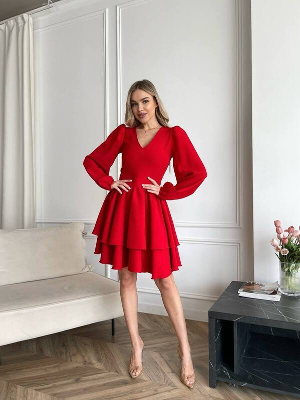 Отзывы о Платье коктейльное женское из костюмной ткани с V образным вырезом расклешенное с пышной юбкой осеннее зимнее k-126216