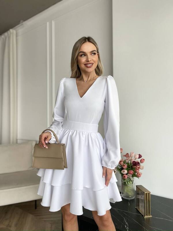 Эта модель создана для тех случаев, когда хочется выглядеть особенно нежно, элегантно и при этом современно. Платье привлекает внимание своим лёгким, воздушным силуэтом и продуманным кроем, который подчёркивает женственность и аккуратность образа. Оно смотрится утончённо и свежо, создавая ощущение чистоты линий и визуальной лёгкости.