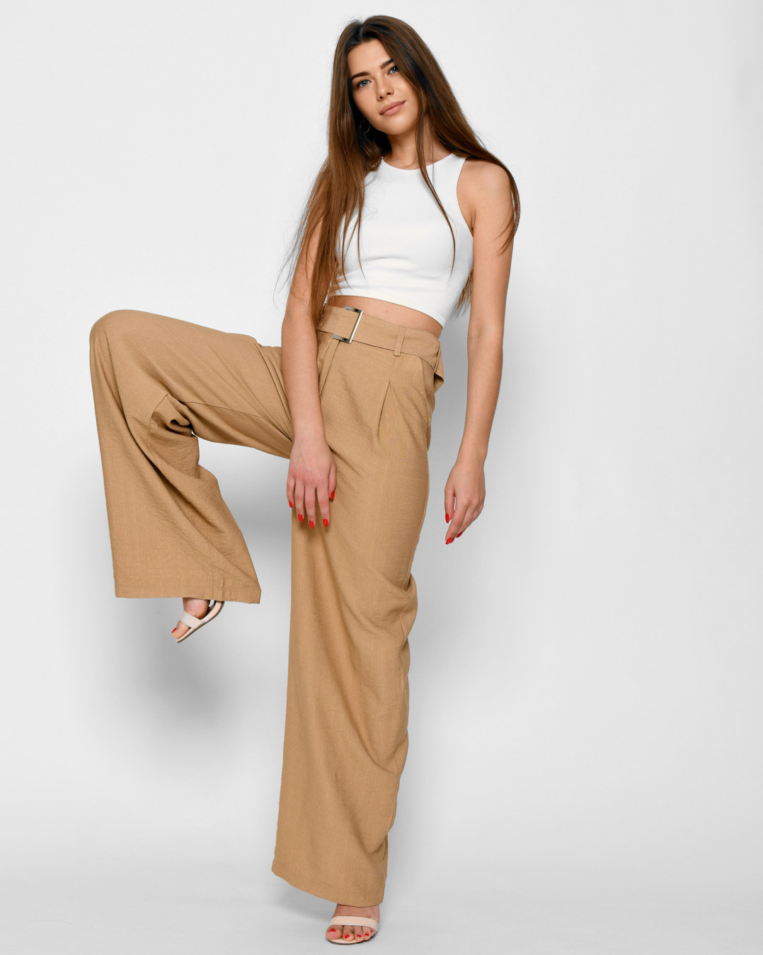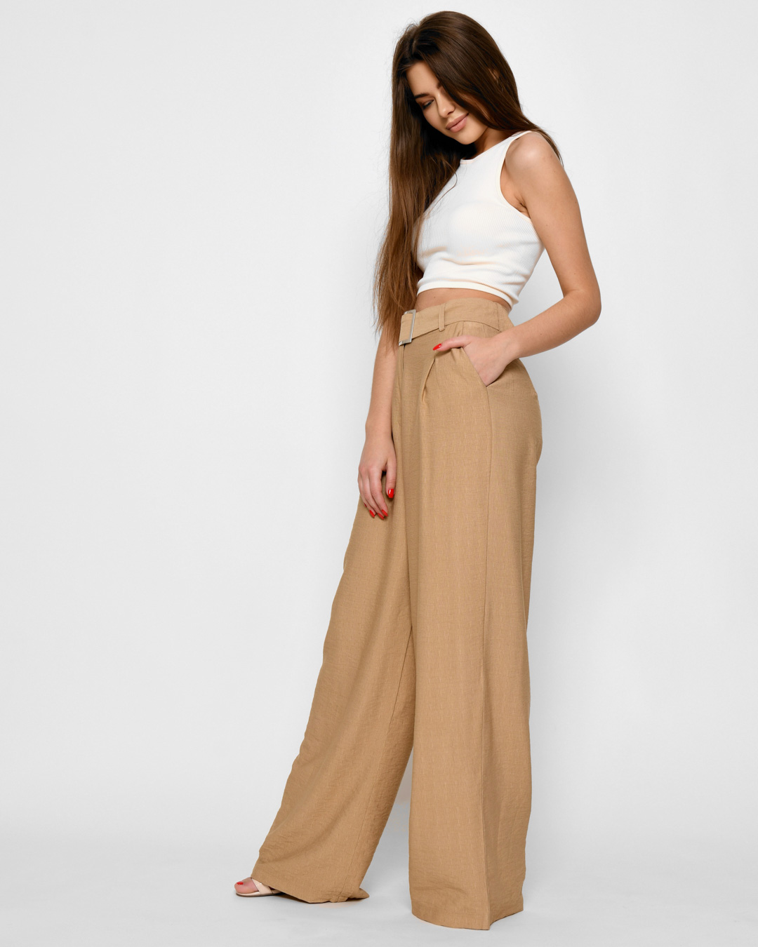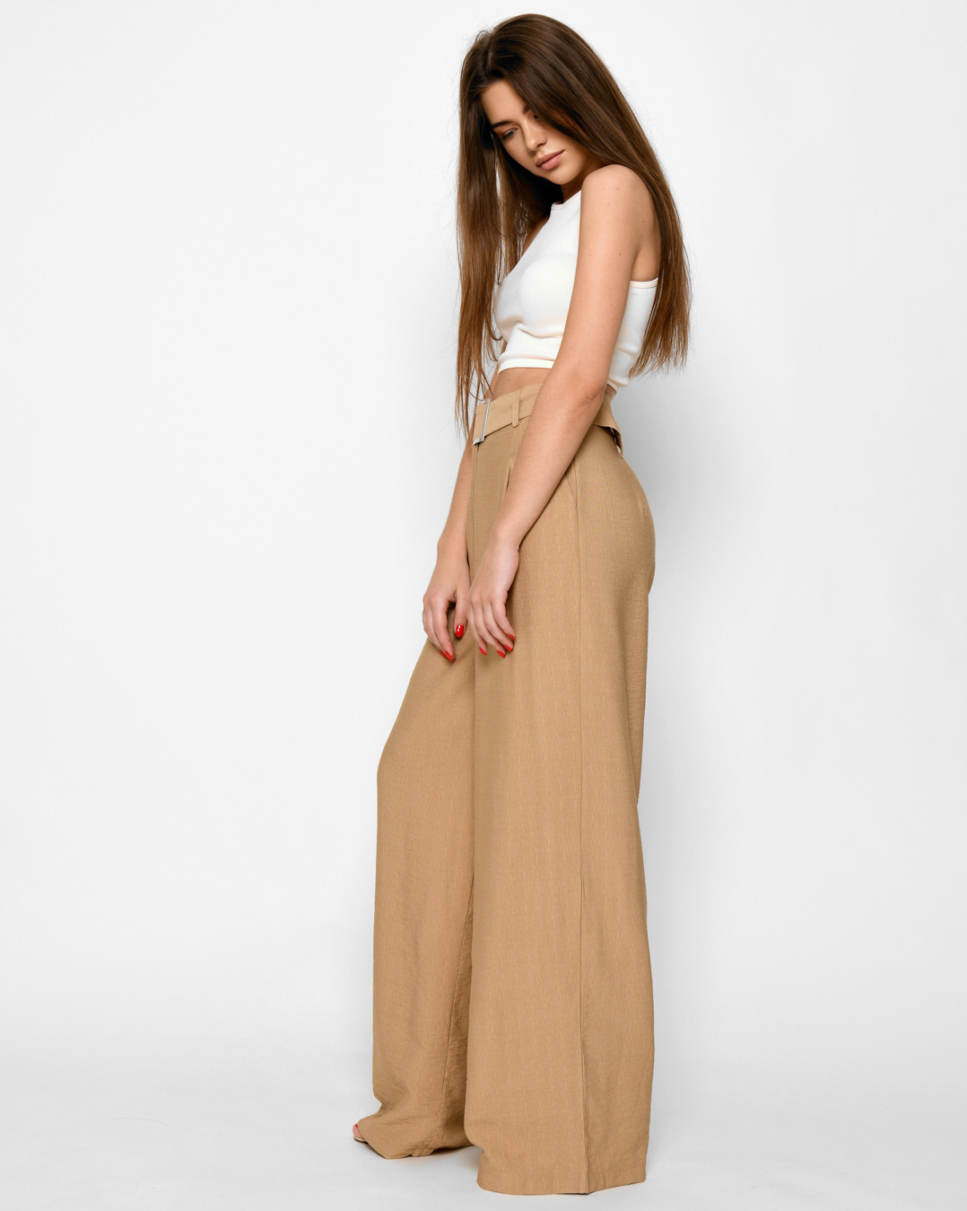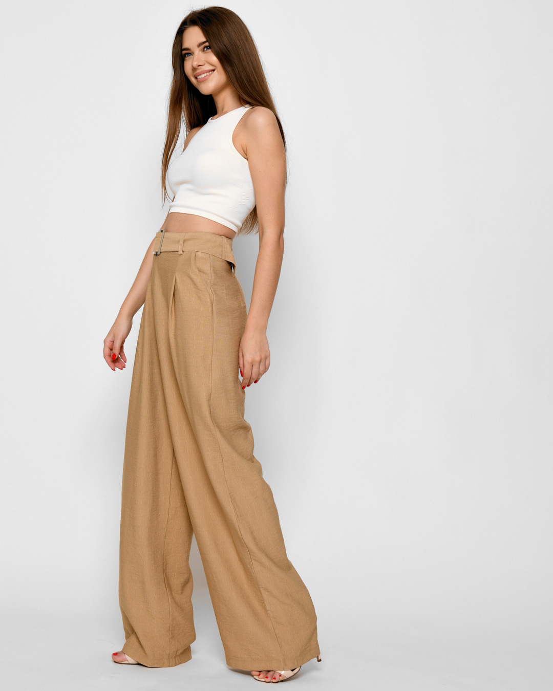 Доступные размеры :[S] Размер S:Рост модели:167 смДлина внутреннего шва:83Длина изделия:115Обхват бедер:96Обхват талии:66Ширина штанины:32Ширина штанины:31Стильные и легкие, эти брюки-палаццо созданы для летних дней! Изготовленные из приятного к телу.. Читать полностью
