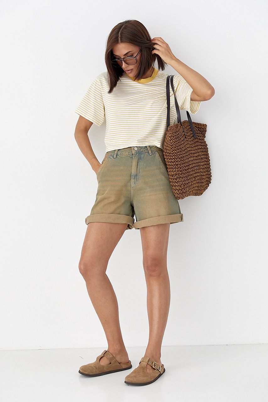 Шорти джинсові з ефектом two-tone coloring — це поєднання тренду та практичності.