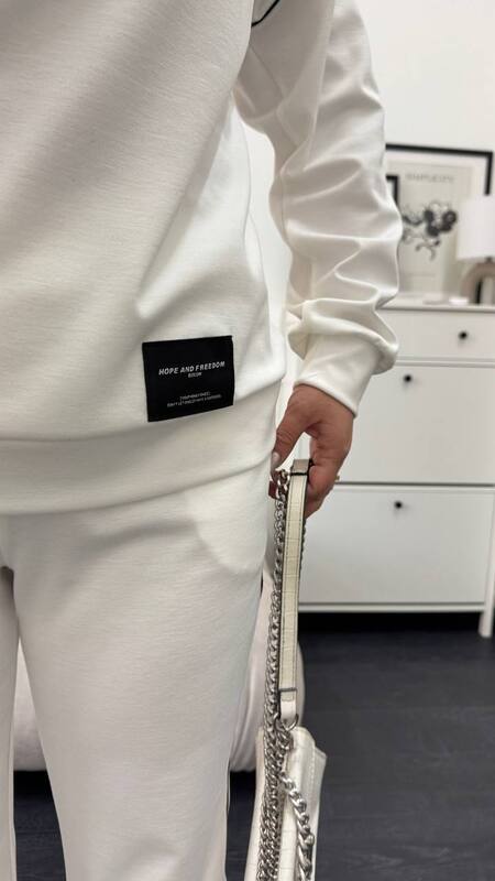 • ВИМІРИ:42-46Світшот; ОГ 100, рукав від горловини 76,довжина 69ШтаниОС 108, довжина 76/107, пояс 70/10048-50СвітшотОГ 110, рукав від горловини 76, довжина 70ШтаниОС 116, довжина 76/107, пояс 80/11052-54Світшот; ОГ 120, рукав від горловини 77, довжина 71Штани; ОС 124, довжина 77/108, пояс 87/12056-58Світшот; ОГ 130, рукав від горловини 77, довжина 72Штани; ОС 132, довжина 77/108, пояс 95/130