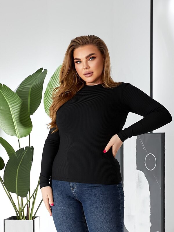 Лонгслив женский базовый трикотажный рубчик с длинным рукавом осенний k-123688