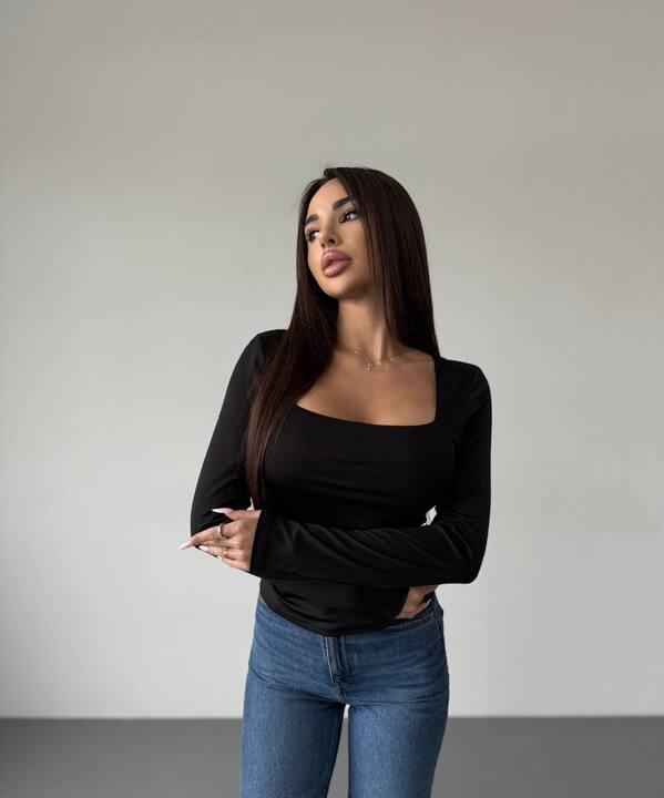 Лонгслив женский из микродайвинга приталенный с длинным рукавом и квадратным вырезом весенний k-127955