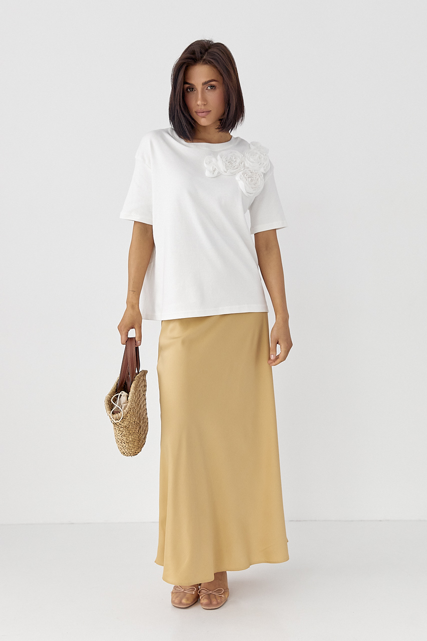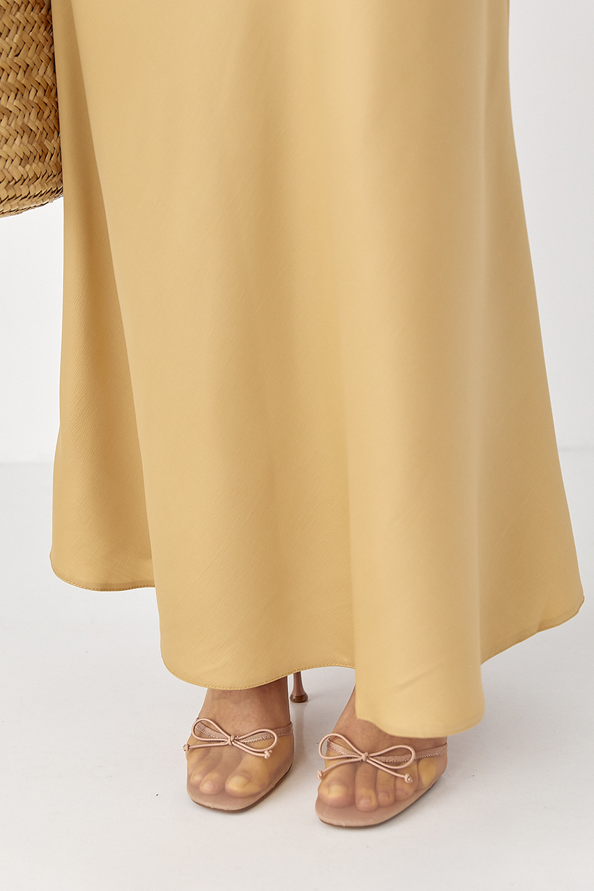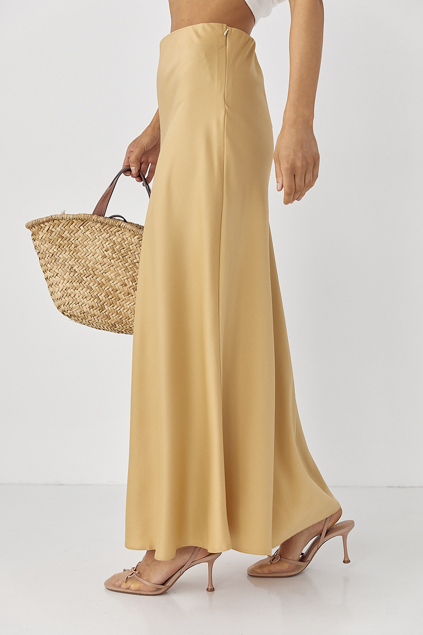 Доступные размеры :[S] Размер S:Ширина по стегнам: 54смДовжина по боковому шву, см: 97смШирина по талії/поясу, см: 34смАтласна однотонна довга спідниця – елегантна та вишукана модель, що підкреслює жіночність і додає образу вишуканості.