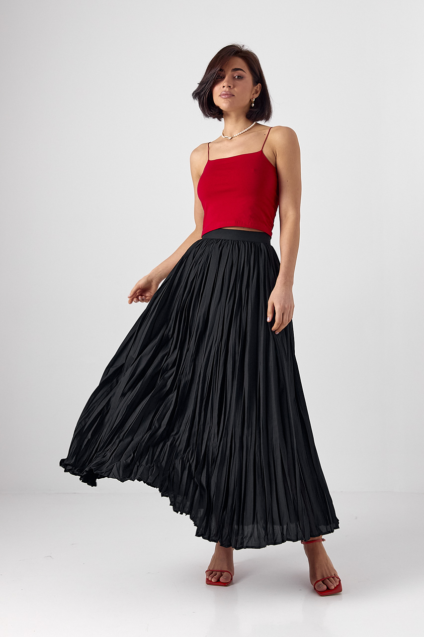 Доступные размеры :[S] Размер S:Ширина по талії/поясу, см: 36смДовжина виробу, см: 96смПлісирована спідниця максі — це елегантна і стильна модель, яка додає образу легкості та витонченості.