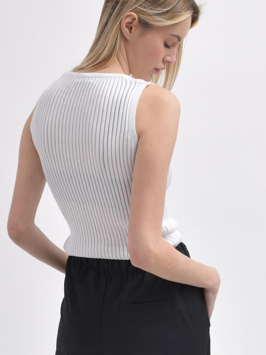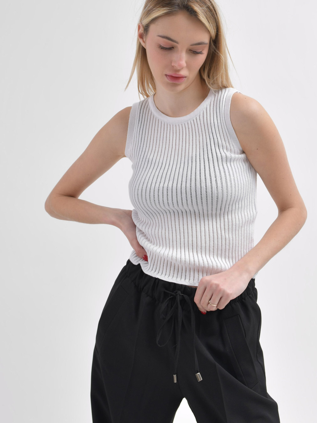 Доступные размеры :[ONE SIZE] Размер ONE SIZE:Длина изделия:49Эта женская вязаная майка подчеркивает современный стиль благодаря изящным полупрозрачным вертикальным линиям, придающим оригинальность образу. Легкая и комфортная модель отлично подойдет .. Читать полностью