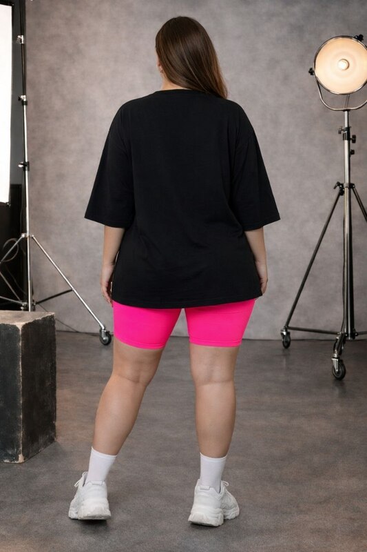 Удлинённый фасон и свободные рукава делают эту модель особенно удобной и актуальной. Футболка отлично сочетается с джинсами, шортами, велосипедками, леггинсами, спортивными брюками и юбками в casual-стиле. Её можно носить навыпуск, частично заправлять, сочетать с кедами, кроссовками, сандалиями и повседневными аксессуарами. Круглый вырез и лаконичный дизайн позволяют без труда комбинировать модель с рубашками, кардиганами, жилетами и лёгкими накидками.