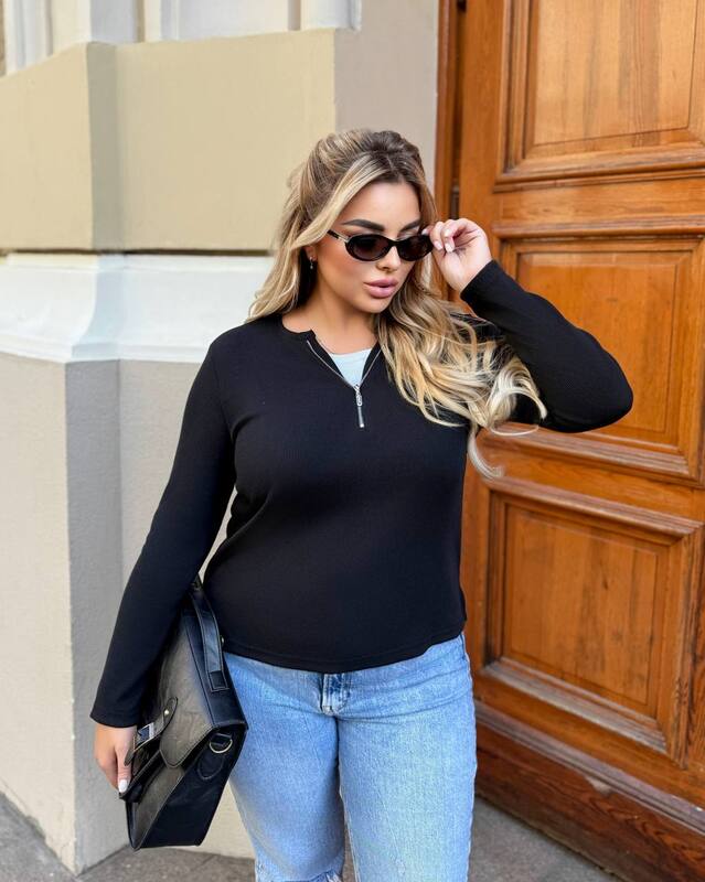 Особенностью изделия является декольте-обманка с аккуратной молнией, что добавляет женственности и делает образ современным. Длина по спинке 60–63 см оптимальна для комбинирования с джинсами, брюками или юбками, а черный цвет выгодно подчеркивает фигуру и подходит для любых повседневных и стильных сетов.