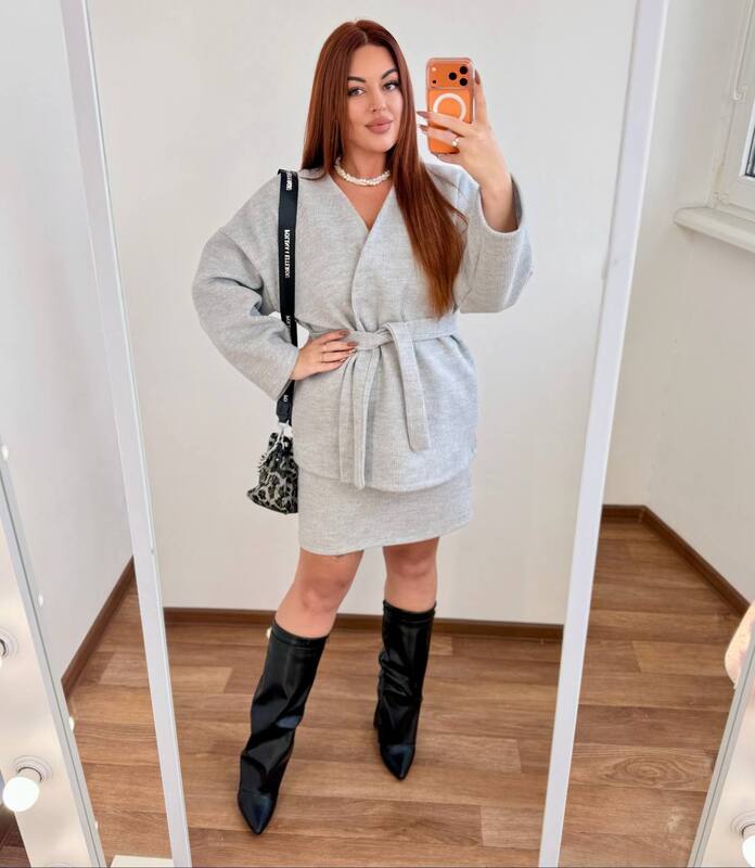 Юбка прямого кроя дополняет верх, создавая лаконичный и сбалансированный ансамбль. Она удобно садится по фигуре, не сковывает движений и визуально вытягивает силуэт. Комплект универсален и подходит как для офиса, так и для прогулок или вечерних встреч.