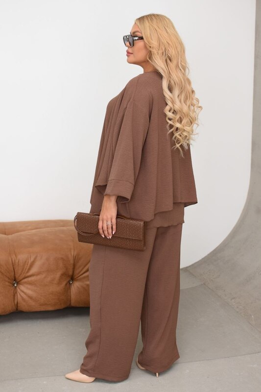 Американский креп хорошо подходит для весенне-летнего сезона: ткань приятна в носке, красиво драпируется и помогает комплекту выглядеть аккуратно в течение дня. Модель отлично подойдет для прогулок, отдыха, поездок, встреч и повседневных выходов, когда хочется выглядеть эффектно без лишних усилий. Особенно удачный вариант для тех, кто ценит комфорт, свободную посадку и универсальные вещи, которые легко адаптировать под разное настроение и случай.