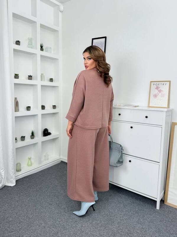 Костюм можно легко комбинировать с обувью на каблуке, ботинками или кедами. Он прекрасно подходит для офиса, прогулок и встреч, а также для стильного повседневного образа. Это изделие станет универсальной основой гардероба, сочетающей комфорт, женственность и современный стиль.
