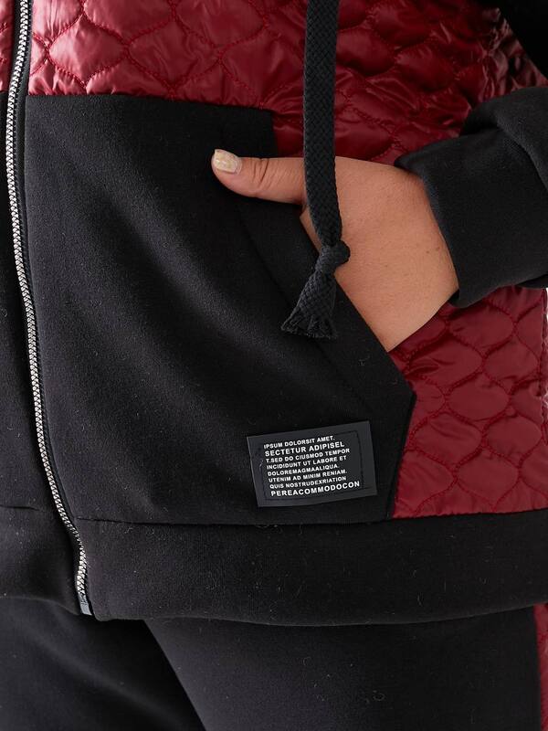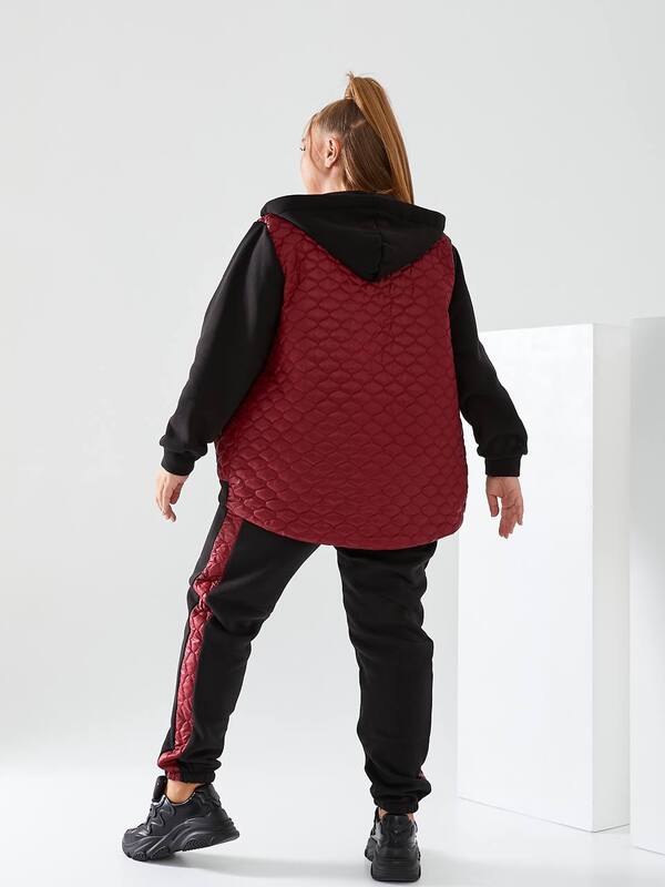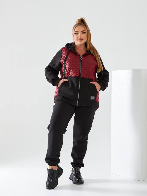 Отзывы о Спортивный костюм-двойка женский утепленный из трехнитки на флисе с бордовыми стегаными вставками и капюшоном осенне-зимний k-124376