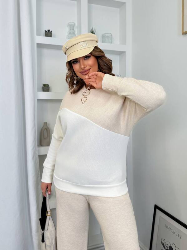 Джемпер выполнен в современном дизайне с диагональными вставками, которые визуально стройнят фигуру и придают образу динамичности. Мягкий свободный крой позволяет чувствовать себя максимально комфортно, а горловина округлой формы делает образ утончённым и универсальным. Манжеты на рукавах добавляют удобства и сохраняют тепло. Этот верх легко комбинируется с джинсами, юбками или леггинсами, создавая множество стильных и уютных образов.