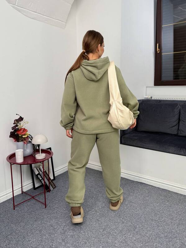 Оливковый оттенок добавляет образу утончённости и природной гармонии. Этот костюм станет вашим фаворитом для прогулок, путешествий и уютных домашних вечеров. Он универсален, практичен и подчеркнёт ваш вкус, позволяя чувствовать себя уверенно и комфортно в любой ситуации.