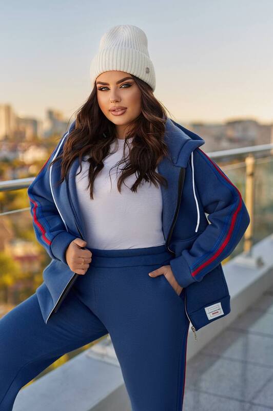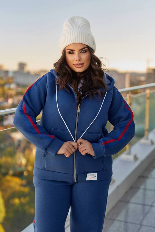 Отзывы о Спортивный костюм-двойка женский утепленный из трехнитки на флисе PENE с капюшоном и лампасами осенне-зимний k-125137