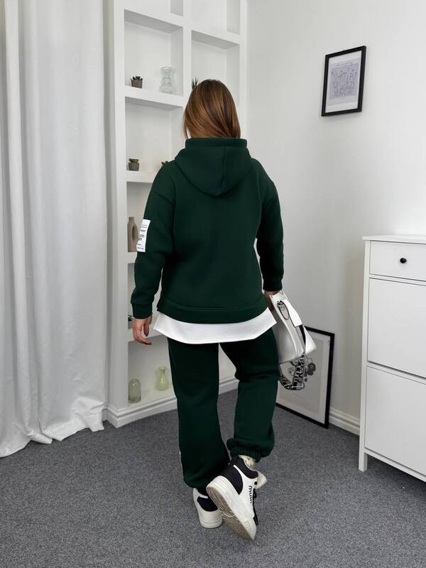 Костюм универсален в носке: он подходит как для прогулок, так и для путешествий, отдыха или активного досуга. Элегантный глубокий оттенок смарагда выгодно подчеркивает внешний вид и придает образу утонченности. В сочетании с кроссовками или ботинками костюм создаёт трендовый городской лук, подчеркивая уверенность и чувство стиля.