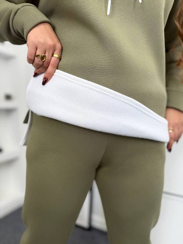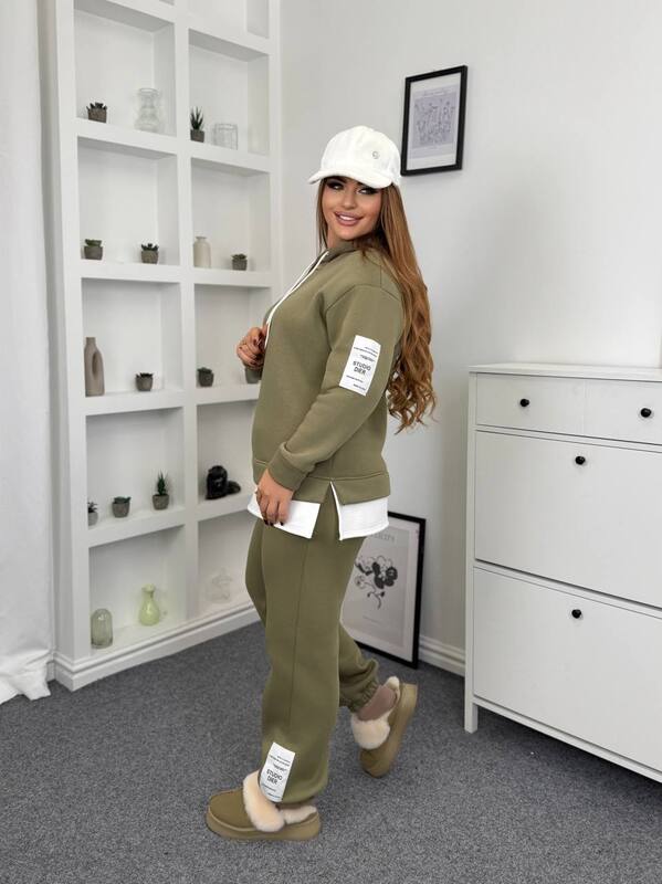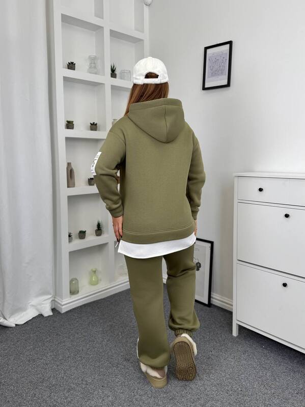 Стильный оливковый оттенок добавляет образу свежести и современности. Такой костюм станет идеальным вариантом для прогулок, путешествий, отдыха или активного дня. Он легко комбинируется с кроссовками, ботинками и зимней обувью, создавая актуальный и уютный образ.