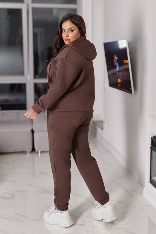 Глубокий шоколадный оттенок делает костюм универсальным и легко сочетаемым с любыми аксессуарами и обувью. Он прекрасно подходит для прогулок, путешествий, отдыха или активного дня, создавая одновременно стильный и расслабленный образ.