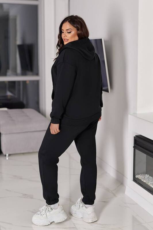 Толстовка на молнии с удобным капюшоном и крупной декоративной молнией с кольцом придает образу динамичность и современный спортивный акцент. Врезные карманы добавляют функциональности и делают модель удобной для повседневных прогулок. Брюки имеют комфортную посадку, эластичный пояс и манжеты по низу, что подчеркивает фигуру и обеспечивает удобство при движении.
