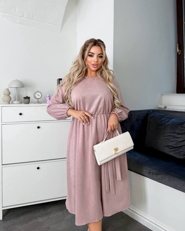 Такое платье станет прекрасным выбором для офиса, прогулок, встреч или торжеств в прохладный сезон. Его можно комбинировать с жакетами, кардиганами или короткими пальто. Мягкая фактура замши, приятная к телу, создаёт ощущение уюта и тепла, а благородный крой делает образ стильным и современным. Платье подойдёт для создания нежных, женственных и утончённых осенне-зимних комплектов.