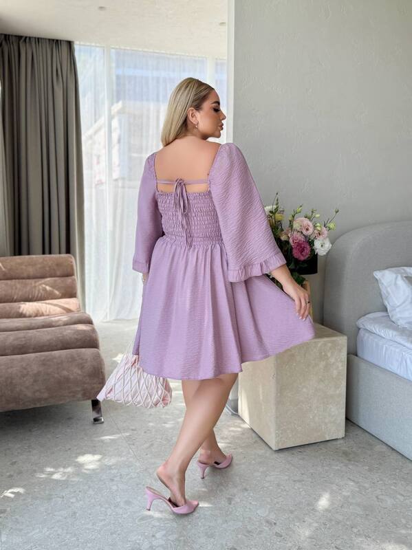 Платье подойдет женщинам, которые ценят комфорт, легкость, свободную посадку и красивые детали. Размеры 46–52 и 54–58 позволяют подобрать удобный вариант для разных параметров, включая большие размеры. Модель легко сочетать с босоножками, туфлями, небольшой сумкой, клатчем, летними аксессуарами и аккуратными украшениями. Это готовый женственный образ, в котором удобно двигаться, приятно выглядеть и легко чувствовать себя уверенно.