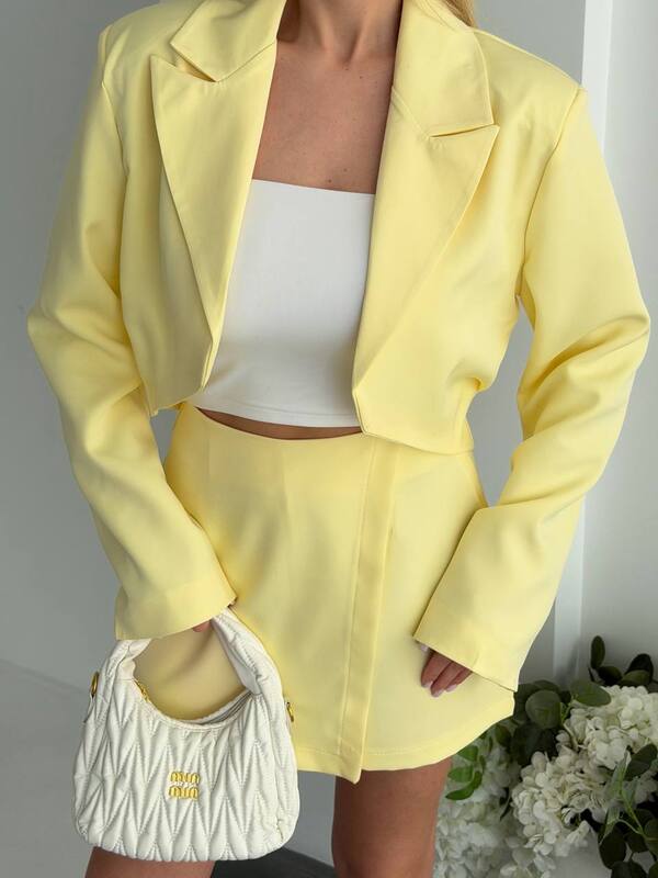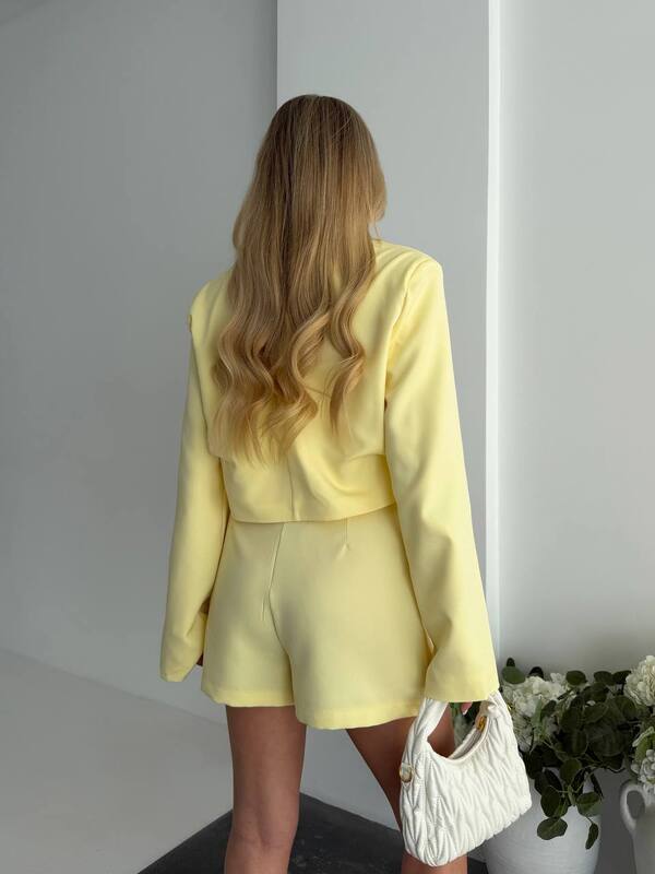 Этот женский костюм-двойка — эффектный и очень актуальный вариант для тех, кто любит собранные, женственные и выразительные образы. Комплект удачно сочетает в себе укороченный жакет и юбку-шорты, благодаря чему образ получается одновременно элегантным, современным и уверенным. Такая модель помогает выглядеть стильно без лишних усилий и сразу создает ощущение продуманного, завершенного образа, который привлекает внимание своей аккуратностью и модной подачей.