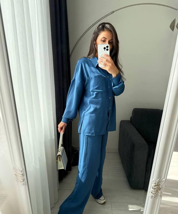 Свободная рубашка добавляет комплекту стильную расслабленность и делает образ более многослойным. Топ подчеркивает женственность и делает посадку комфортной, а брюки свободного кроя визуально вытягивают силуэт и добавляют образу легкости. Такой костюм прекрасно сочетается с кедами, кроссовками, босоножками, сандалиями и лаконичными аксессуарами. Он подходит для тех случаев, когда хочется выглядеть ярко, современно и уверенно без сложного подбора вещей.