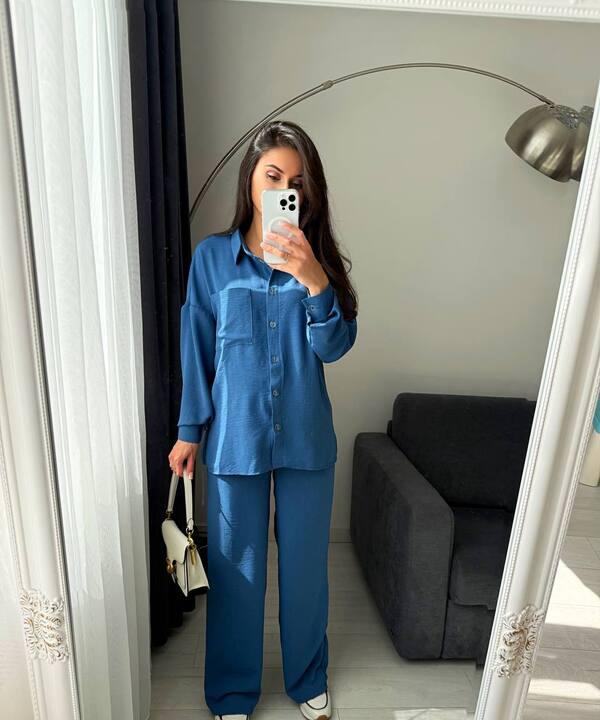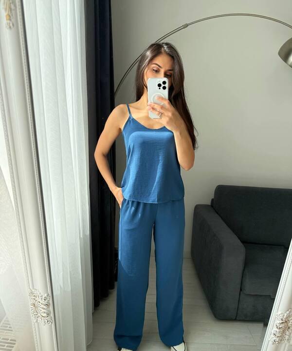 Модель состоит из трех элементов, благодаря чему образ получается более интересным, продуманным и универсальным. В комплекте удачно сочетаются легкий топ, свободная рубашка и брюки, которые вместе формируют гармоничный и стильный силуэт. Такой набор особенно удобен тем, что его можно носить как полноценным комплектом, так и комбинировать каждую вещь отдельно с другими элементами гардероба. Это делает костюм не только красивым, но и практичным решением на сезон.