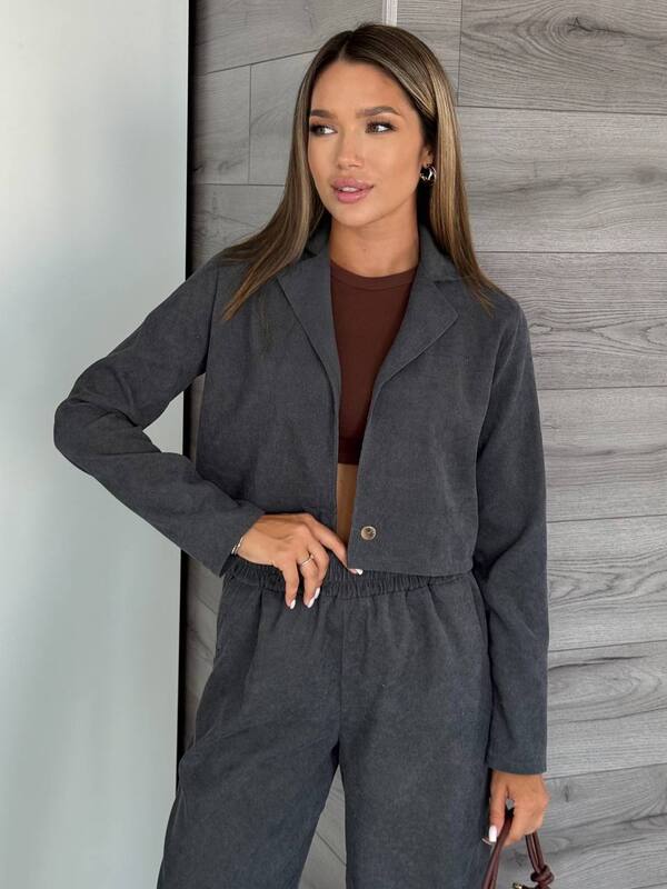 Благодаря мягкой фактуре вельвета костюм выглядит дорого и современно, при этом остается практичным в носке. Лаконичный крой и однотонный дизайн позволяют создавать универсальные образы — от делового до повседневного или вечернего.
