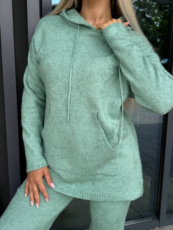 Комплект состоит из кофты с капюшоном и прямых брюк. Кофта имеет удлиненный фасон, длинные рукава и вместительный капюшон, который добавляет практичности и защищает от ветра. Брюки прямого кроя с удобной посадкой и длиной до пола создают расслабленный силуэт, обеспечивая свободу движений. Такой костюм отлично подходит для женщин, которые ценят комфорт и при этом хотят выглядеть стильно.