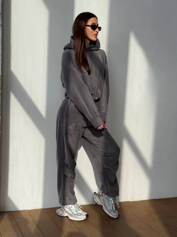 Доступные размеры :[42-46, 48-52] Розміри:42–46: ОГ 112, ОБ 106, ОТ 60–78, довжина кофти/штанів 57/105 см, рукав 62 см 48–52: ОГ 118, ОБ 114, ОТ 72–88, довжина кофти/штанів 60/108 см, рукав 62 смЦвет: графітПроизводство: УкраїнаСезон: осінь-зимаРост .. Читать полностью