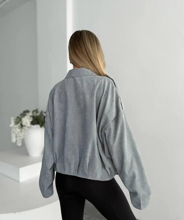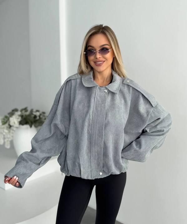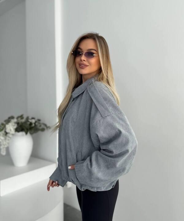 Бомбер женский из вельвета на подкладке оверсайз короткий весенний k-128516