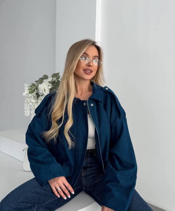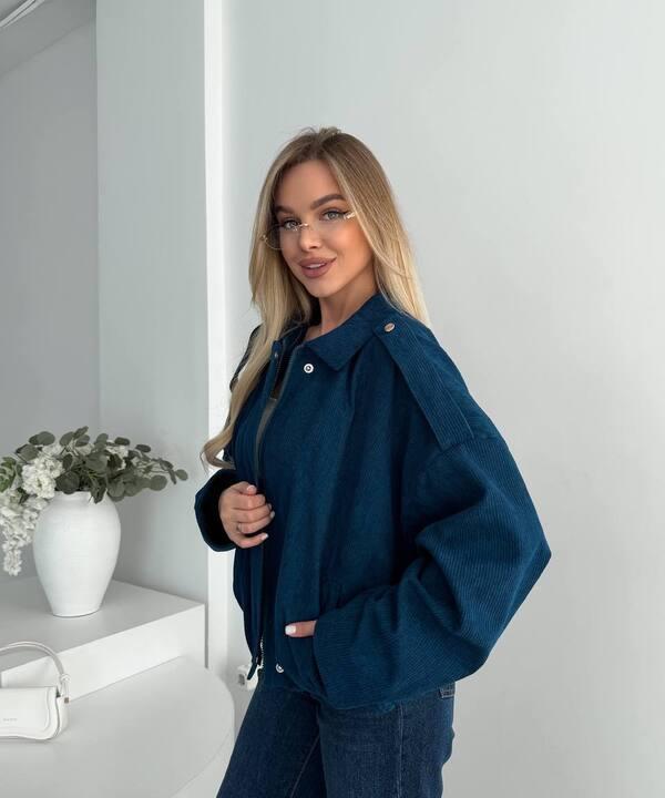 Бомбер женский из вельвета на подкладке оверсайз короткий весенний k-128517