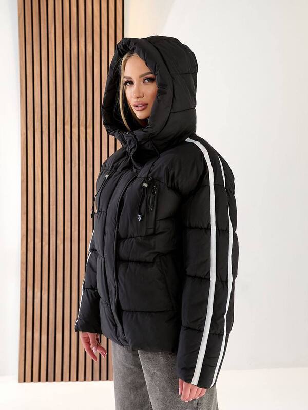 Отзывы о Куртка женская зимняя с капюшоном и контрастными вставками из полиэстера с наполнителем биопух k-123727