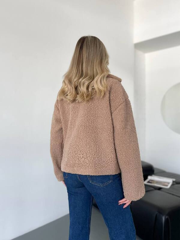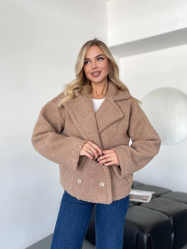 Отзывы о Пальто-пиджак женское из эко-меха Тедди на подкладке oversize осенне-зимнее k-125335