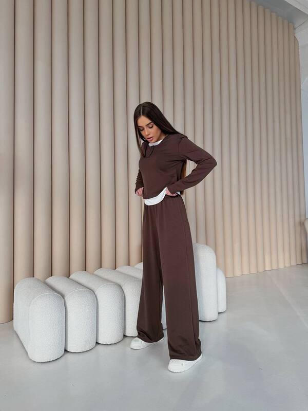 Осенняя модель прекрасно подойдёт для городских будней, встреч с друзьями или домашних вечеров, когда важны уют и привлекательность одновременно. Костюм выглядит современно и трендово, сохраняя при этом простоту и практичность. Нейтральные оттенки делают его базовой вещью гардероба, которая позволит каждый день выглядеть модно и уверенно.