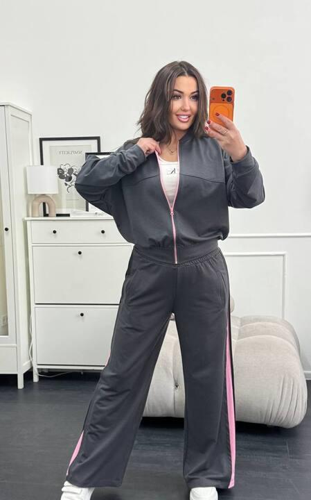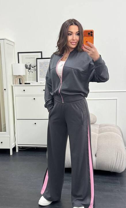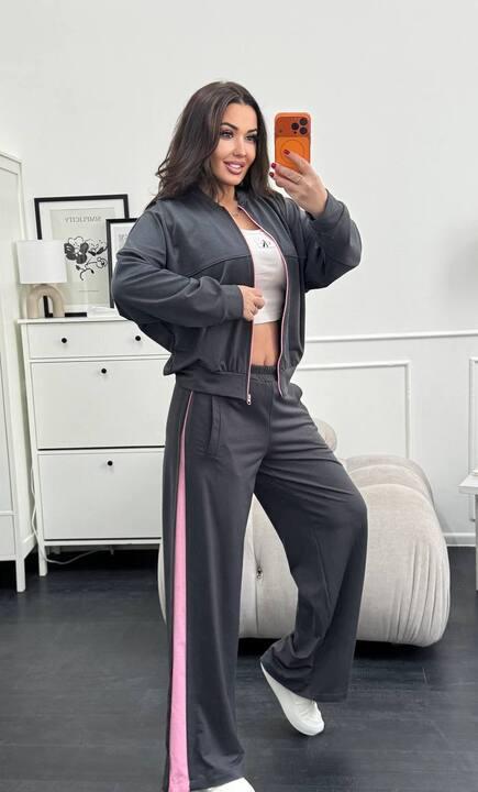 Отзывы о Спортивный костюм женский из двунитки с укороченной кофтой на молнии и широкими брюками с лампасами демисезонный k-128187