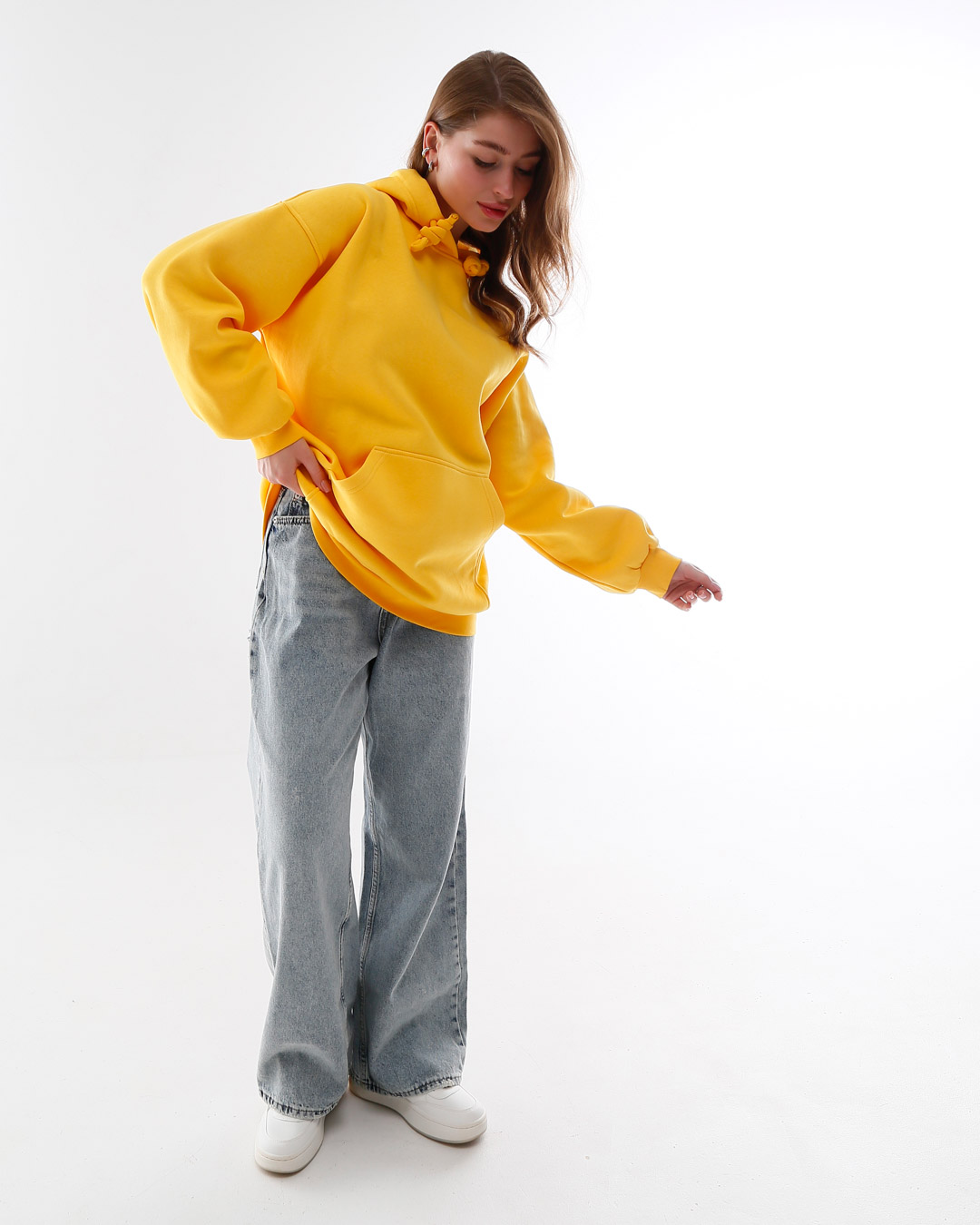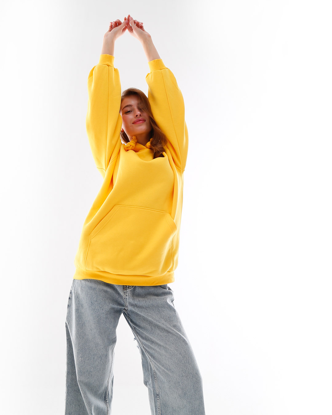 Женский желтый худи оверсайз на флисе 53323  xp-2760