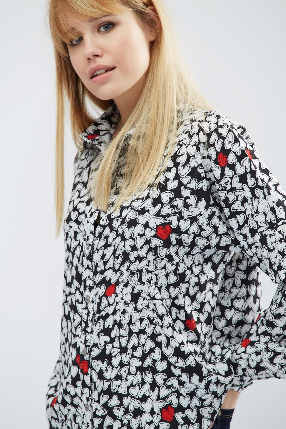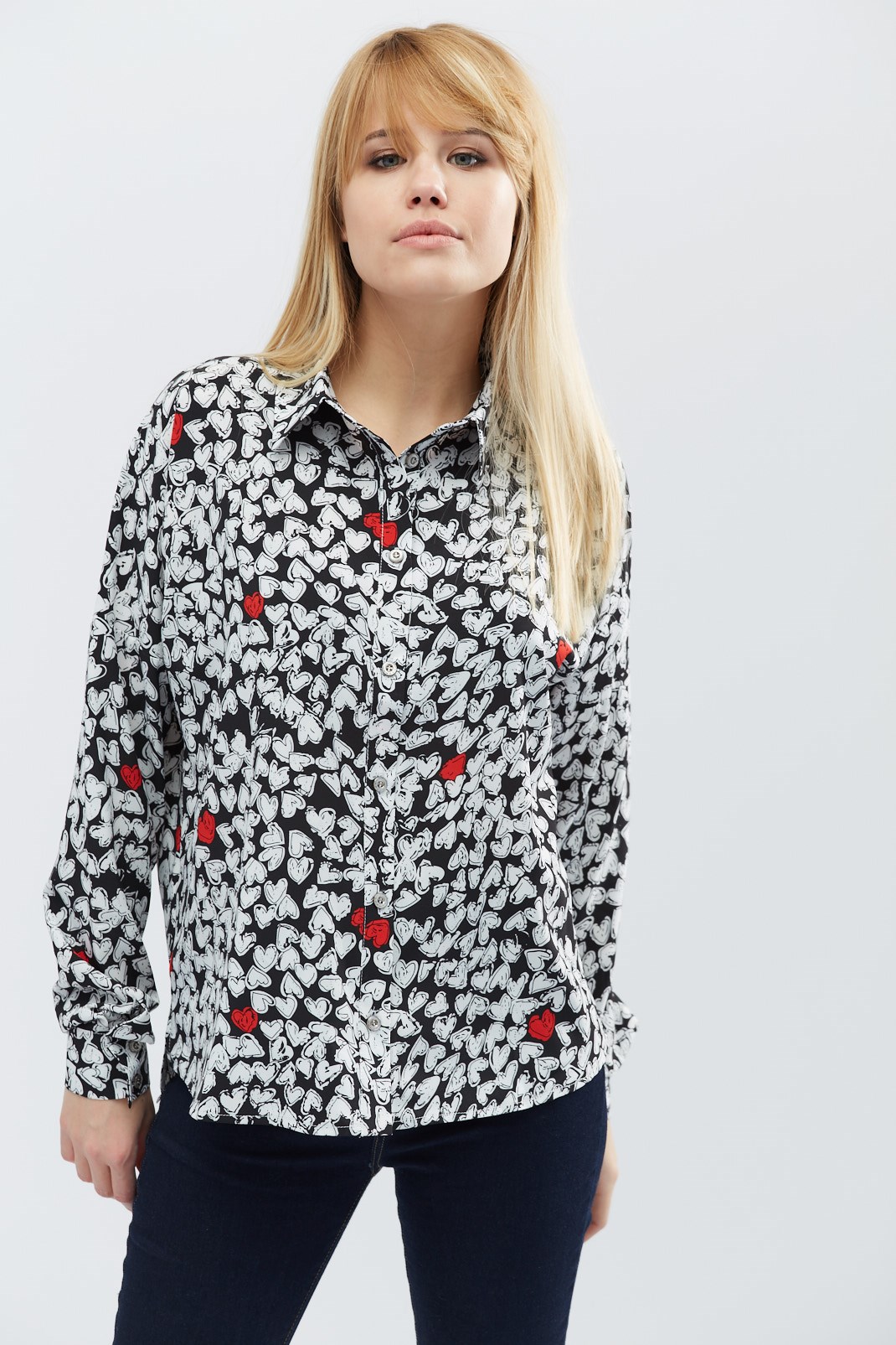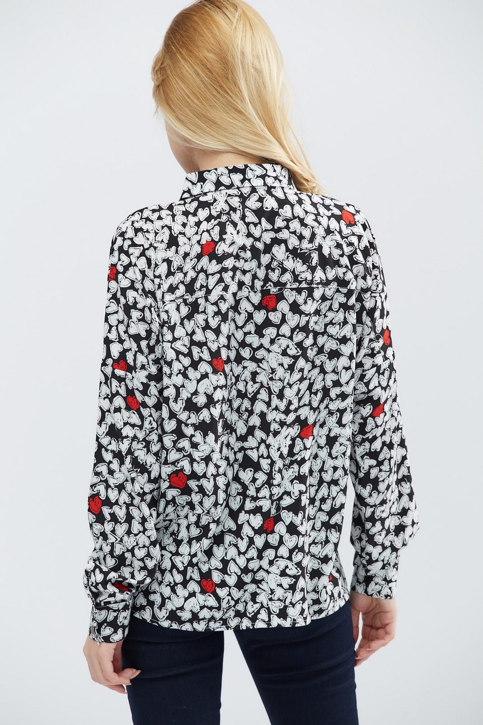 Доступные размеры :[XS] Размер XS:Рост модели:169 смДлина изделия:65Длина плеча:33Длина рукава:43Обхват груди:112Ширина плечей:71Женская рубашка с сердечками для романтического и делового образа. Модель свободного фасона. Имеет рукав на широкой манже.. Читать полностью