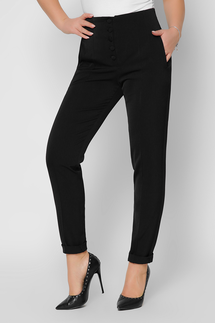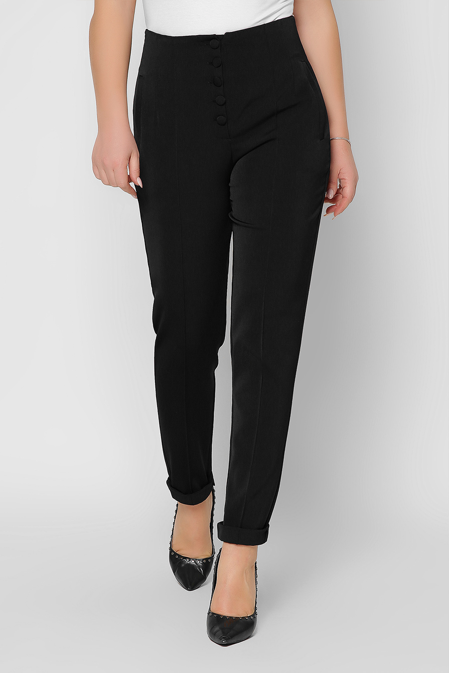 Женские черные брюки на высокой посадке 36599  xp-2408