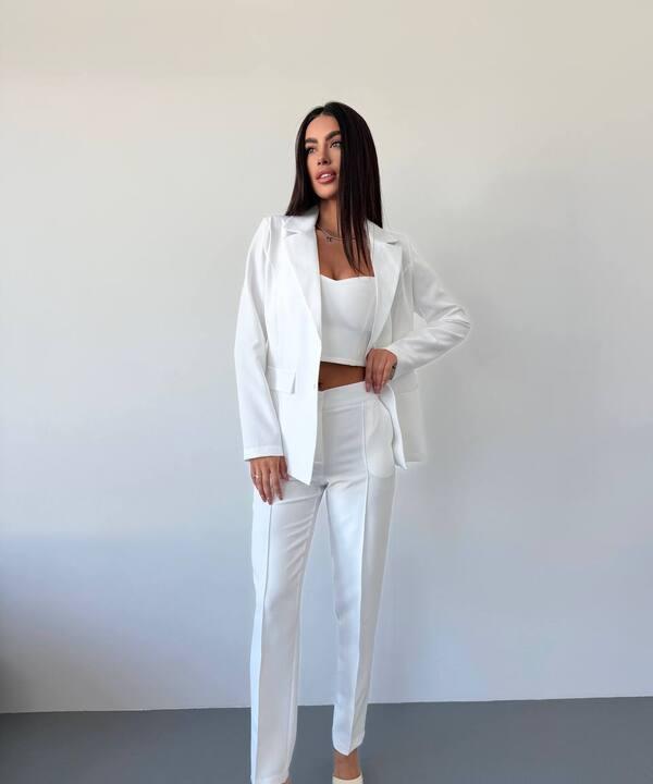 Доступные размеры :[42-44, 44-46, 46-48] Розмір 42–44Піджак: ОГ 98 см, ОТ 90 см, довжина 68 см, рукав 74 смТоп: ОГ до 92 см, ОТ 70 см, довжина 30 смШтани: ОТ 68–76 см, ОС 100 см, довжина 98 см, крок 75 смРозмір 44–46Піджак: ОГ 102 см, ОТ 94 см, довжи.. Читать полностью