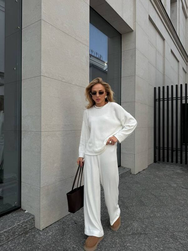 Этот комплект идеально подойдёт как для прогулок, так и для работы или повседневных дел. Его можно носить с кроссовками для кэжуал-образа или сочетать с ботильонами и аксессуарами для более элегантного стиля. Турецкая ангора в рубчик сохраняет форму, устойчива к износу и долго остаётся привлекательной. Такой костюм подарит уют, тепло и стиль, оставаясь универсальным решением для множества образов в осеннем гардеробе.