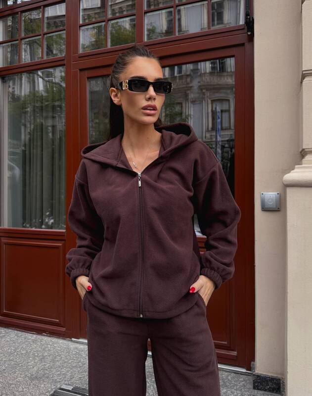 Такой костюм прекрасно подойдёт для осенне-зимнего сезона. Он согреет в прохладные дни, при этом останется лёгким и дышащим. Универсальный фасон позволяет сочетать костюм с кроссовками, ботинками или утеплёнными уггами. Это практичная, удобная и модная модель, которая станет незаменимой частью гардероба современной женщины.
